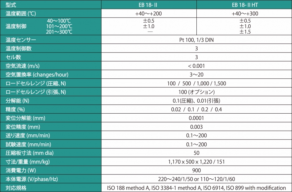 ISO 188 method A, ISO 3384-1 method A, ISO 6914, ISO 899 with modification